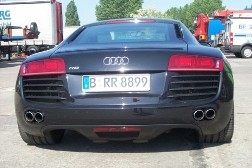 Klare, kraftvolle Linien zeichnen den Fahrzeugkörper des R8 und das breite, bullige Auftreten zeigen, dass seine Gene aus dem Rennsport stammen. Damit ist er vielmehr schon als Rennwagen zu bezeichnen.