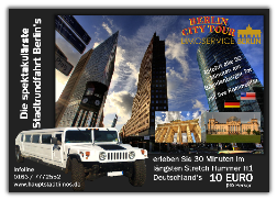 Bei uns erhalten Sie unter anderem Chauffeurfahrzeuge von Maybach bis VW Phaeton, Chrysler und Hummer Stretchlimousinen, VIP-Busse, Party-Busse sowie Sportwagen und Limousinen zum selber fahren für Berlin & bundesweit.