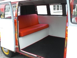 Der T1 besaß insgesamt noch sehr wenig Kunststoffteile. Dementsprechend bestand das Armaturenbrett komplett aus Blech und war fest mit der Karosserie verbunden. Das fehlende Handschuhfach wurde durch ein Blechablage unterhalb des Armaturenbretts über die gesamte Frontbreite ersetzt. In der linken Ecke der Ablage neben der Lenksäule befand sich ab 1963 ein kleiner Kunststoffbehälter für die Scheibenwischanlage, der mechanisch auf Druck wie eine Spritzpistole funktionierte.